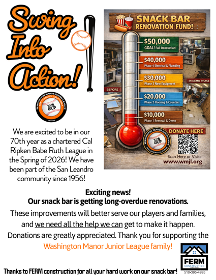 If you haven’t already done so, please come by the park. We would love to have you visit the Washington Manor baseball fields this spring to experience for yourself the great community and family atmosphere that Washington Manor Junior League baseball offers families in our community.